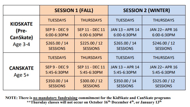 **CSA approved helmets are required for CanSkate and KidSkate Programs.